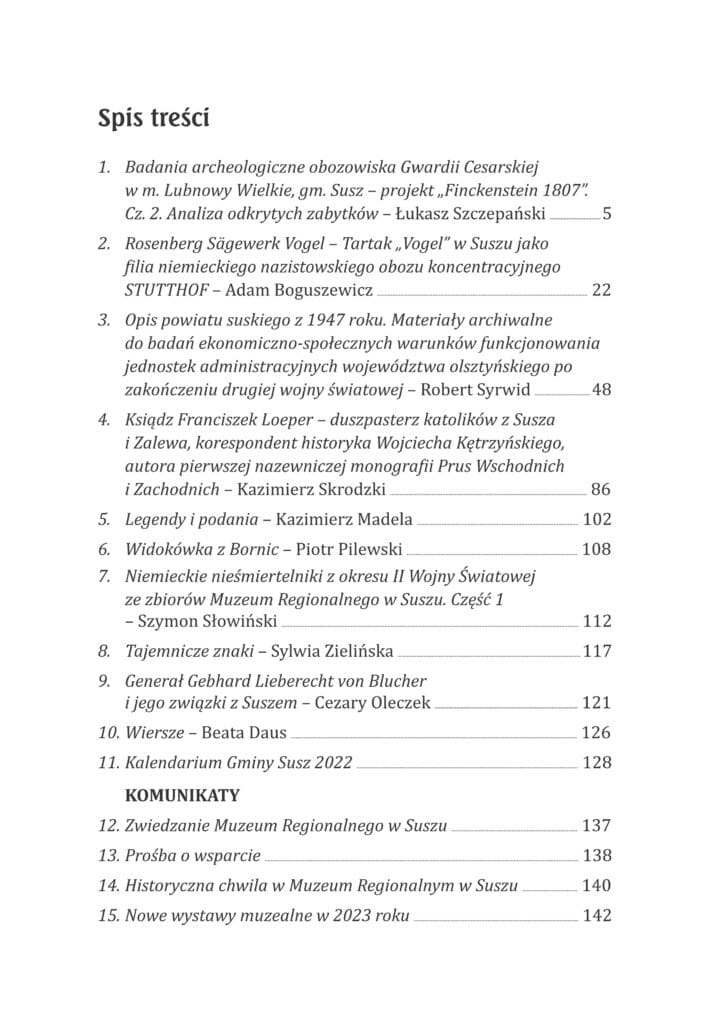 W drugim numerze „Rocznika Suskiego” ukazały się następujące artykuły: