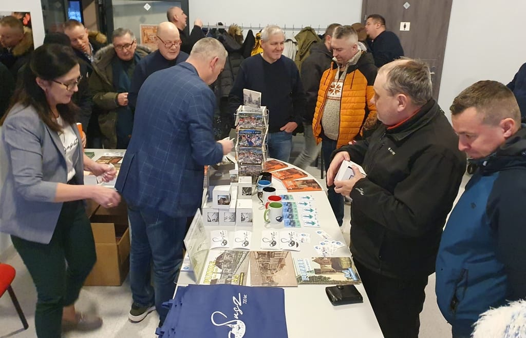 Sebastian Zieliński (przedstawiciel stowarzyszenia) piątkowe spotkanie rozpoczął od prezentacji przygotowań jego organizacji do obchodów rocznicy 720 lat Susza. Zaprezentował logotyp opracowany przez Klaudię Zielińską, a także przygotowane na jego bazie pamiątki i gadżety dla mieszkańców. Wykonane gadżety można było nabyć na stoisku razem z promowanym numerem „Rocznika Suskiego”.